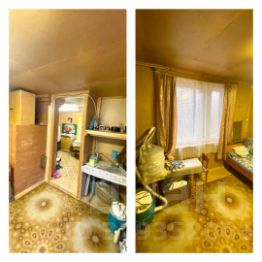 На 1-ом этаже комната с мебелью -15 кв м , кухня с печью- 11 кв м, бытовая техника,