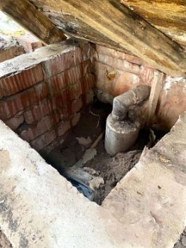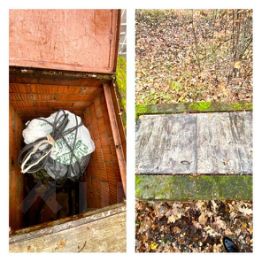 Скважина - 25 метров, в которую опущен новый насос Водолей, находится рядом с домом в кирпичном закрытом блоке фото,