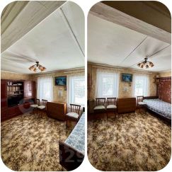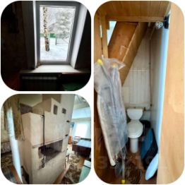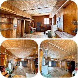 Большая изба с мебелью- 30 кв м, в которой поставлена русская печь 2х2, раковина, место под стиральную машину, сухое подполье, установлены пластиковые окна, биметаллические батареи,