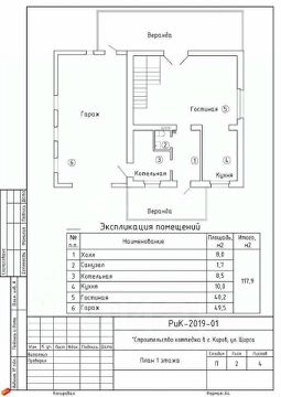 Планировка первого этажа включает: просторную гостиную, кухня, прихожая, санузел, котельную-гардеробную, веранда, терраса. Отдельный вход ведет в пристроенный гараж на 49 кв. м с автоматическими воротами Hormann.