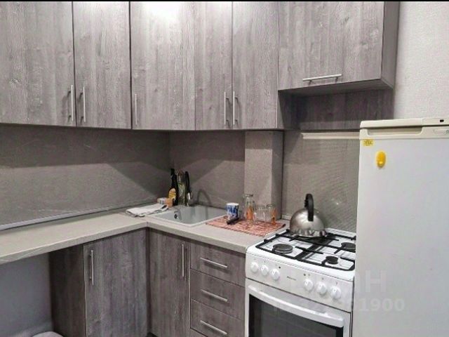 Есть кухонный гарнитур, варочная панель, холодильник, стиральная машина.