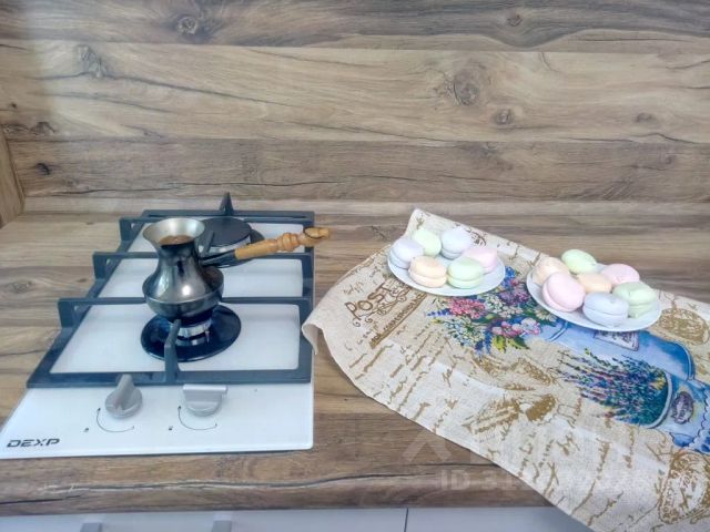 • Оборудованная кухня со всем необходимым - варочная панель, духовой шкаф, микроволновая печь, вытяжка, эл. чайник, набор посуды для приготовления пищи (сковорода, кастрюли, а также приборы), посуда на 4 персоны и столовые приборы.