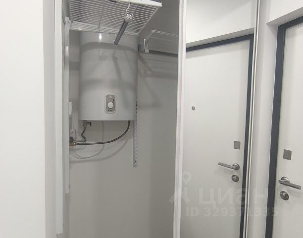 В прихожей установлена гардеробная за дверями купе, в ней находится водонагреватель для экономии места в санузле. Обувница, вешало для одежды, пуф с ящиком для хранения.
