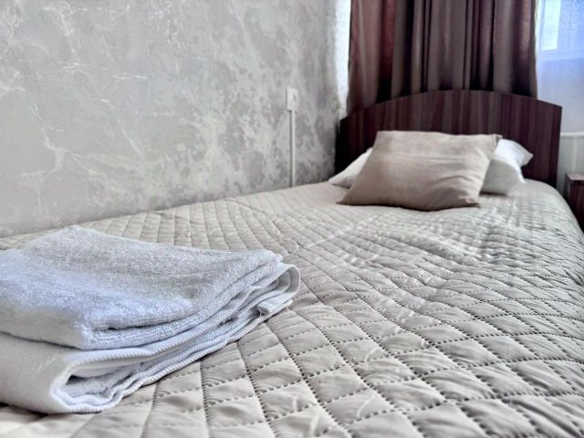 Однокомнатный номер. Двуспальная кровать,прикроватные тумбочки,