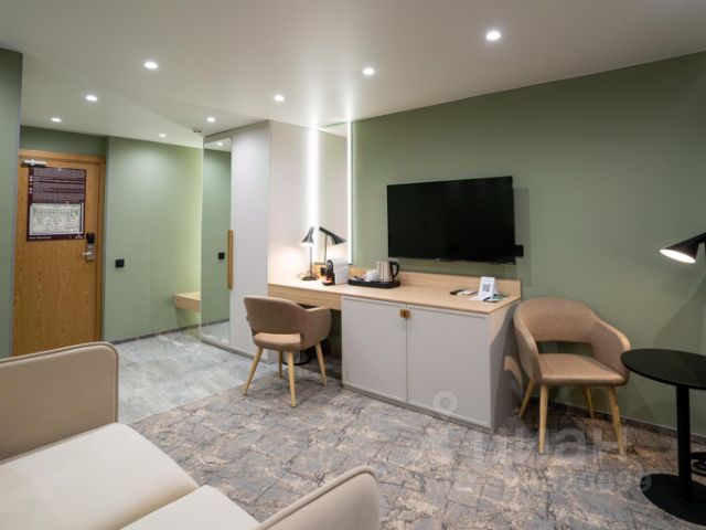Технологии и премиальный сервис. Два ЖК-телевизора с диагональю 42 дюйма, стабильный беспроводной интернет, индивидуальная система кондиционирования всё настроено на ваше спокойствие. Кофемашина для идеального начала дня, мини-бар с набором посуды, чайные и кофейные принадлежности, утюг и гладильная доска домашняя атмосфера в премиальном исполнении.