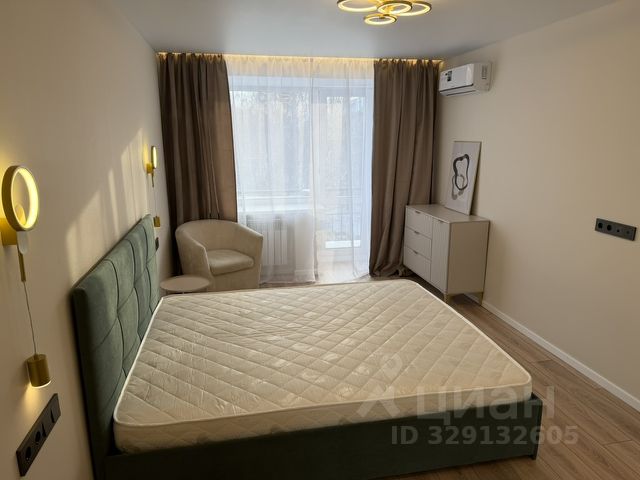 Кондиционер, большая двуспальная кровать с ортопедическим матрасом Орматек, мягкое уютное кресло, консольный столик.