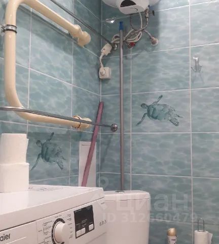 Современная ванная,зеркало, водонагреватель, душ, биде.