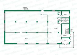 Площадь 617 кв.м., две мокрых точки, отопление, электрика.